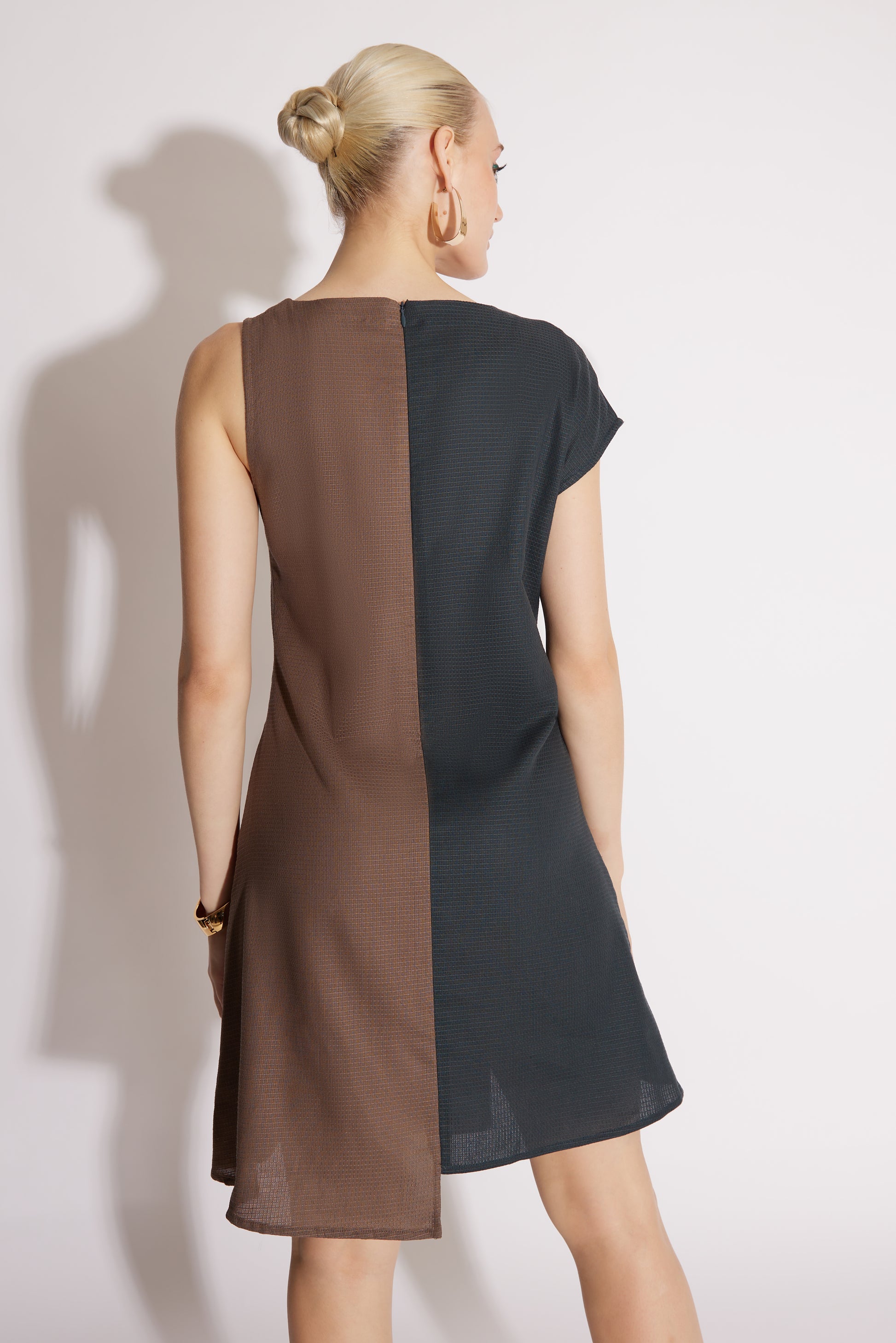The Asymmetric Workwear Dress is where bold meets refined. Crafted from a 40% TENCEL™ Lyocell, 60% Cotton blend, it’s breathable, comfortable, and effortlessly chic. The asymmetrical sleeve and color-blocked contrast in emerald green & beige make it perfect for boardrooms and beyond. A functional pocket adds ease, while the structured-yet-flowy fit moves with you.
