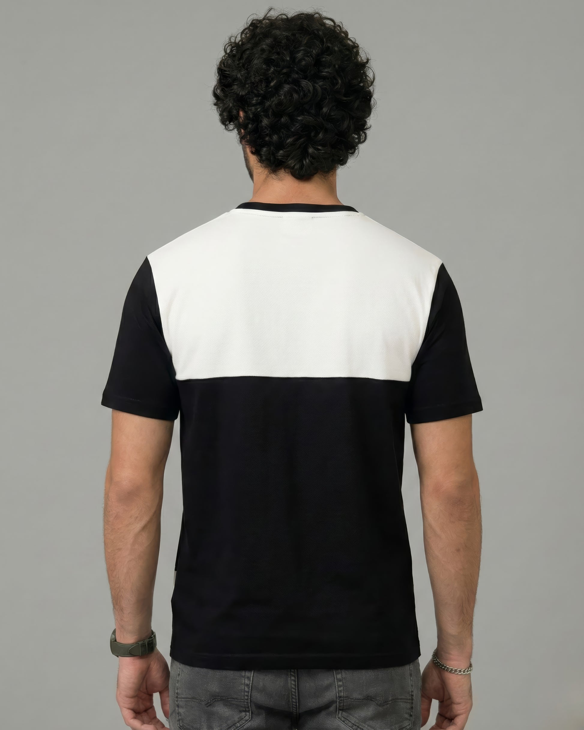 This black and white colorblock T-shirt with a bold utility pocket is built to break the monotony. Clean contrast, sharp lines, and a statement blue functional pocket with buckle detail. Crafted from a premium cotton blend that feels easy yet looks sharp from morning to night.