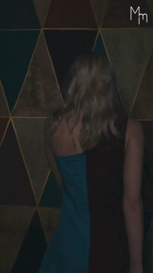 This two-tone linen-cotton dress blends sophisticated design with effortless comfort. The striking blue and brown color block creates a bold yet refined statement, while the lightweight linen-cotton blend ensures breathability and ease of movement. A functional pocket adds practicality, and the asymmetrical ruffle hem with unique shoulder detailing brings a touch of modern femininity.